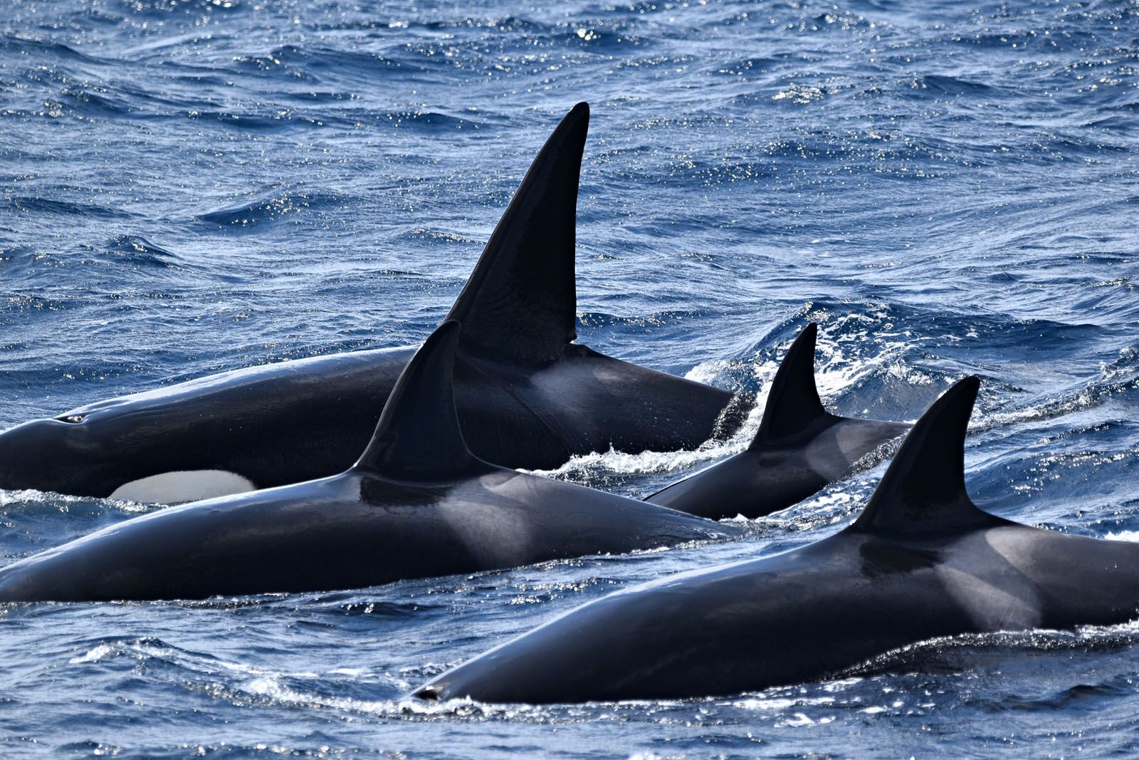 The family pods are lead by a matriarch, the eldest female in the family who through her years of experience and knowledge gained can nurture her family. Living in family pods of 6-20 individuals, they closely learn from the matriarch as she teaches them the language of the family, their diet, hunting and social skills and foraging grounds. The matriarch is usually closely followed by her son, a male Killer Whale is one of the most powerful individuals in the animal kingdom and simply stunning to observe. A dorsal fin as large as a man and weighing in at up to 10 tonnes, a male Orca is an impressive member of the family pod.